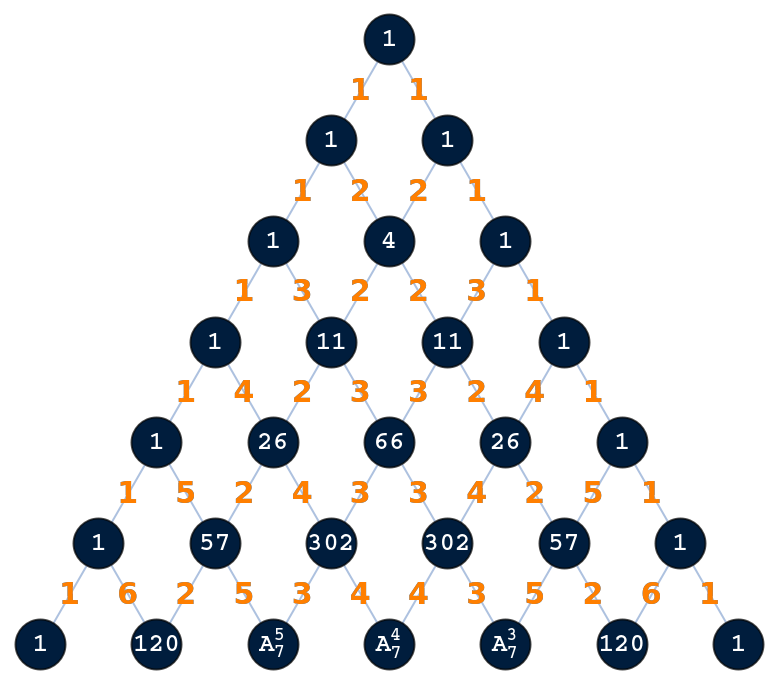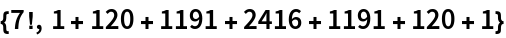 {7!, 1 + 120 + 1191 + 2416 + 1191 + 120 + 1}