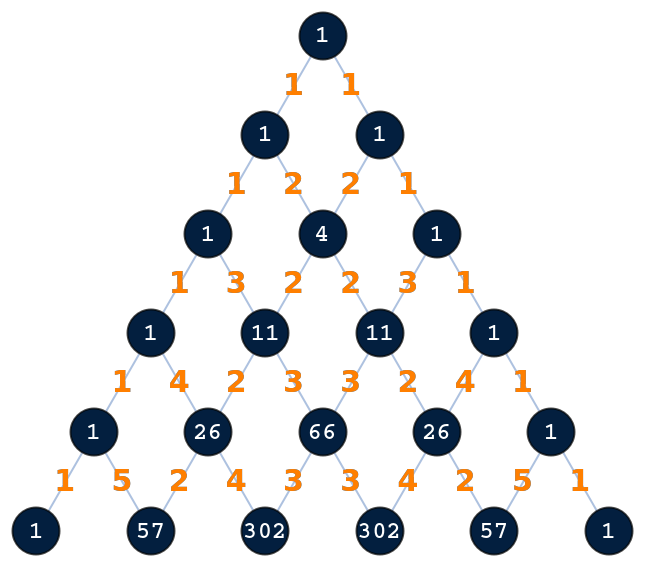 g = ResourceFunction["EulerianNumberTriangle"][5];