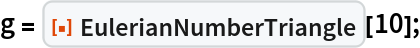 g = ResourceFunction["EulerianNumberTriangle"][10];
