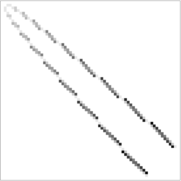 The ArrayPlot of the adjacency matrix for an Eulerian number triangle: