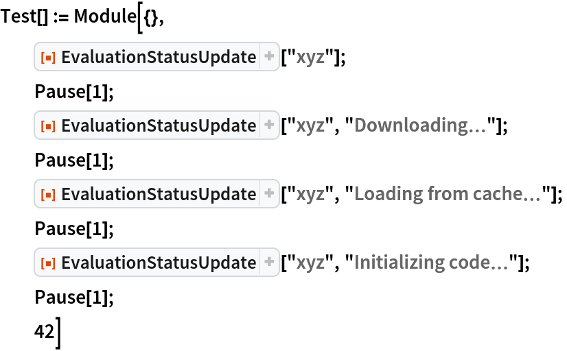 ResourceFunction["EvaluationStatusUpdate"][tag] start the evaluation status update, using tag. | |