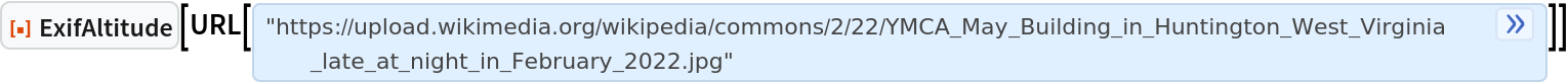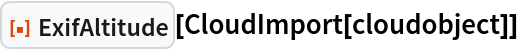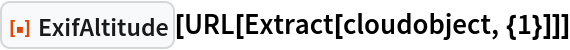 ResourceFunction["ExifAltitude"][url] extracts the elevation of the image at the URL url. |