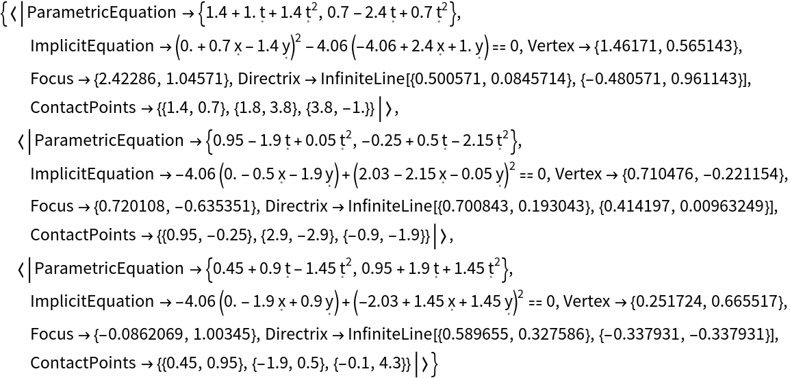 | "Directrix" | The directrix expressed as an InfiniteLine object |