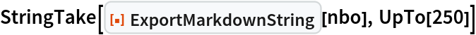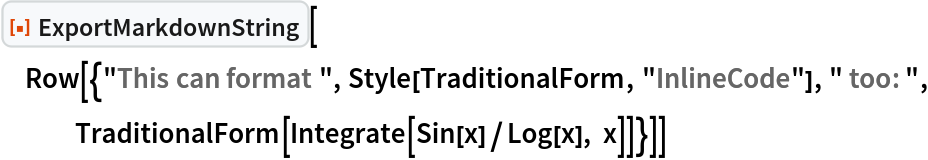 ResourceFunction["ExportMarkdownString"][expr] converts expr to a string in Markdown format. |