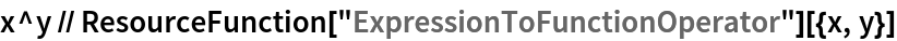 The resource function ExpressionToFunctionOperator is the operator form of ExpressionToFunction: