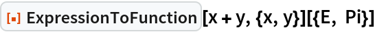 ResourceFunction["ExpressionToFunction"][expr,varspec1→index1,varspec2→index2,…] binds variables specified by varspeci to Slot[indexi]. |