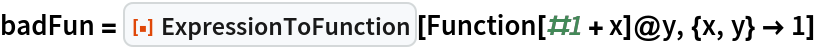 ExpressionToFunction is meant for expressions that do not already contain functions and may malfunction for such expressions if the replacement variables exist inside such functions: