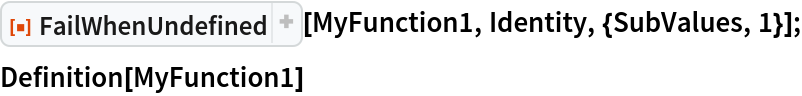 ResourceFunction["FailWhenUndefined"][MyFunction1, Identity, {SubValues, 1}];