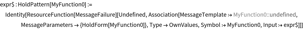 ResourceFunction["FailWhenUndefined"][MyFunction0, Identity, {SubValues, 0}];