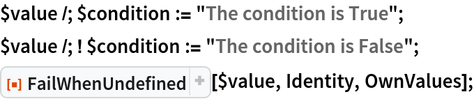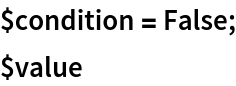 $value /; ! $condition := "The condition is False";