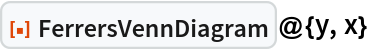 ResourceFunction["FerrersVennDiagram"][{x,y}] gives the Ferrers-Venn diagram of the two integer partitions x and y. |
