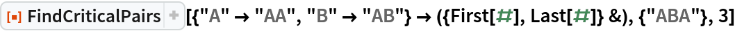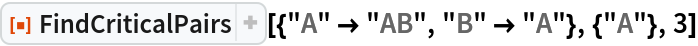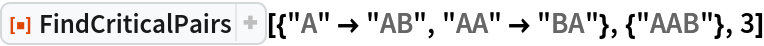 ResourceFunction["FindCriticalPairs"][rules,init,n] finds all critical pairs after n steps in the evolution of the multiway system with the specified rules starting from initial condition init. |