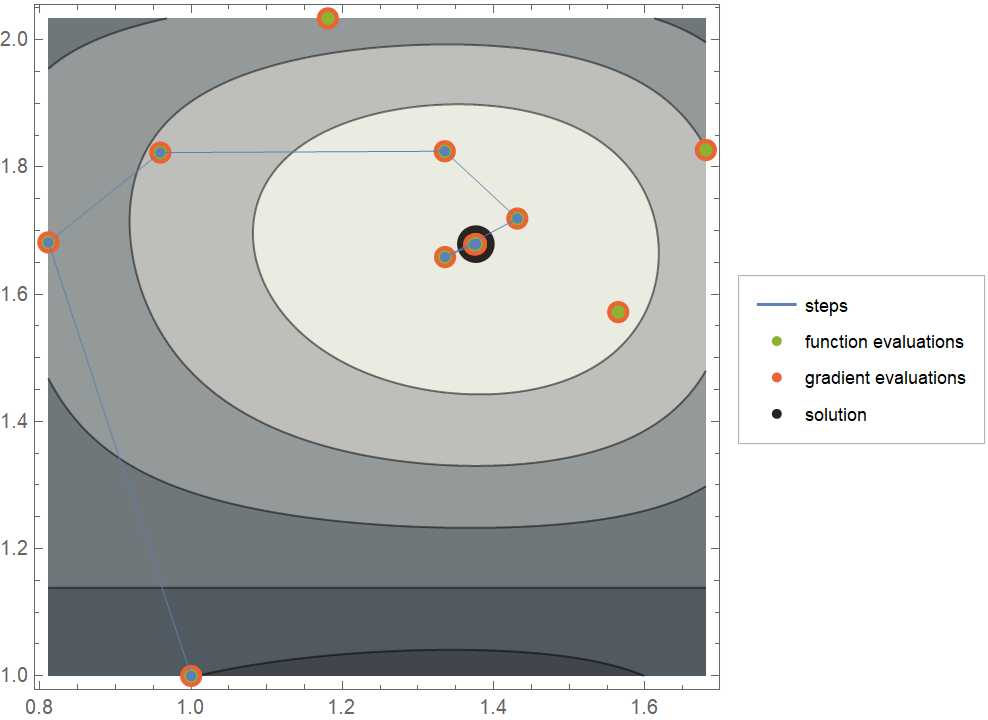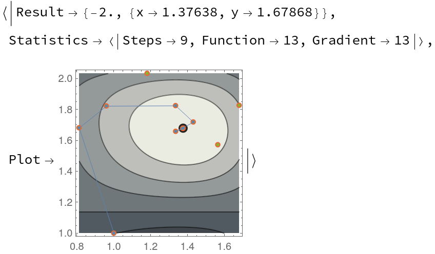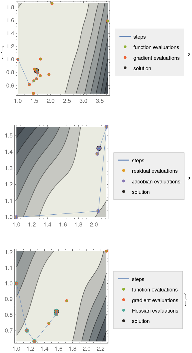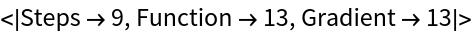 "Statistics"an association showing the number of steps and evaluations of the function and its derivatives