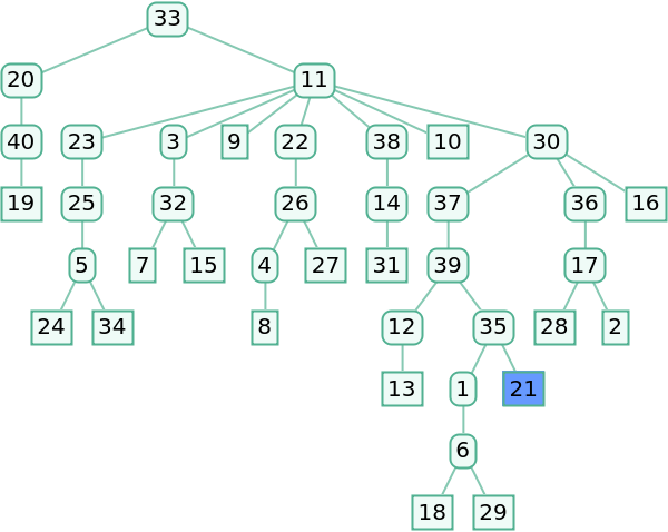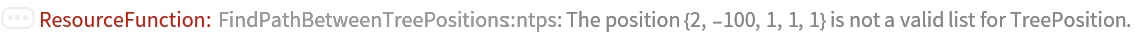 ResourceFunction["FindPathBetweenTreePositions"][start,end] returns a path on that connects the start and end point given their positions on a tree. |