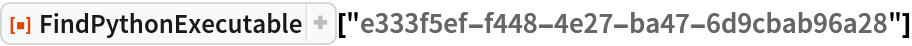 ResourceFunction["FindPythonExecutable"]["uuid"] finds a Python executable for the external evaluator corresponding to the given UUID. |