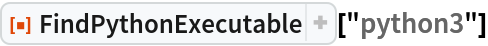 ResourceFunction["FindPythonExecutable"][{"Python",opts}] uses the options opts for the executable. | |