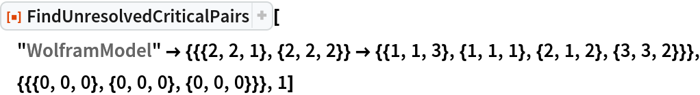 FindUnresolvedCriticalPairs can also find unresolved critical pairs in WolframModel evolutions: