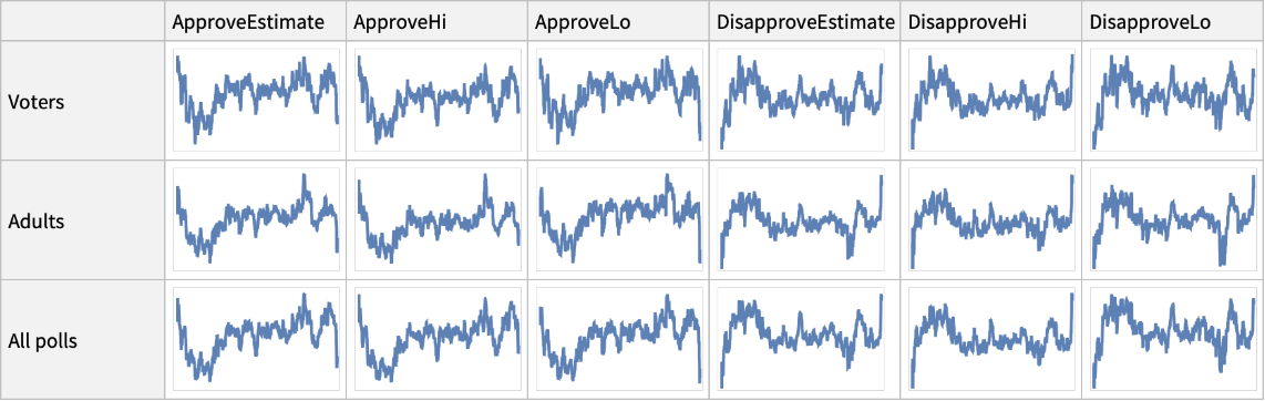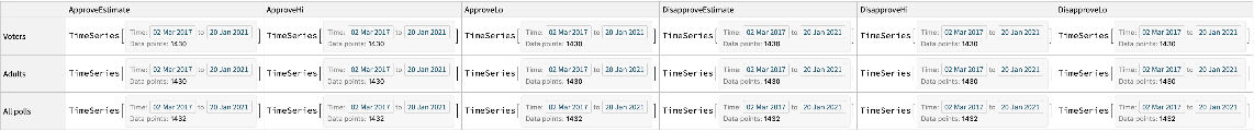 | "TimeSeries" | TimeSeries objects containing approval averages for different respondent types |