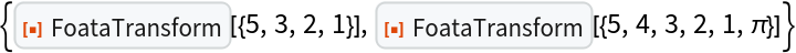 {ResourceFunction["FoataTransform"][{5, 3, 2, 1}], ResourceFunction["FoataTransform"][{5, 4, 3, 2, 1, \[Pi]}]}