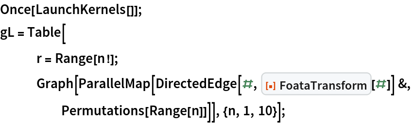 In Wolfram Language, the canonical ordering of permutation cycles differs slightly from that in Foata's paper. In WL, each cycle is rotated so that it starts with its smallest element, and the cycles are then sorted in ascending order of these smallest elements. In contrast, Foata's approach rotates each cycle so that it starts with its largest element, and the cycles are then arranged in ascending order of these largest elements.