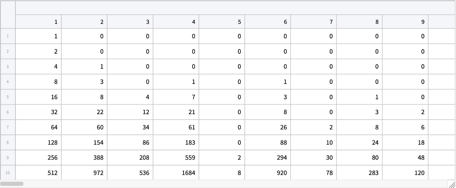 Tabulate the occurrence of permutation cycle in each symmetric group:
