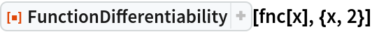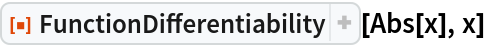 ResourceFunction["FunctionDifferentiability"][f,x] returns the conditions for which f is differentiable with respect to x. | |