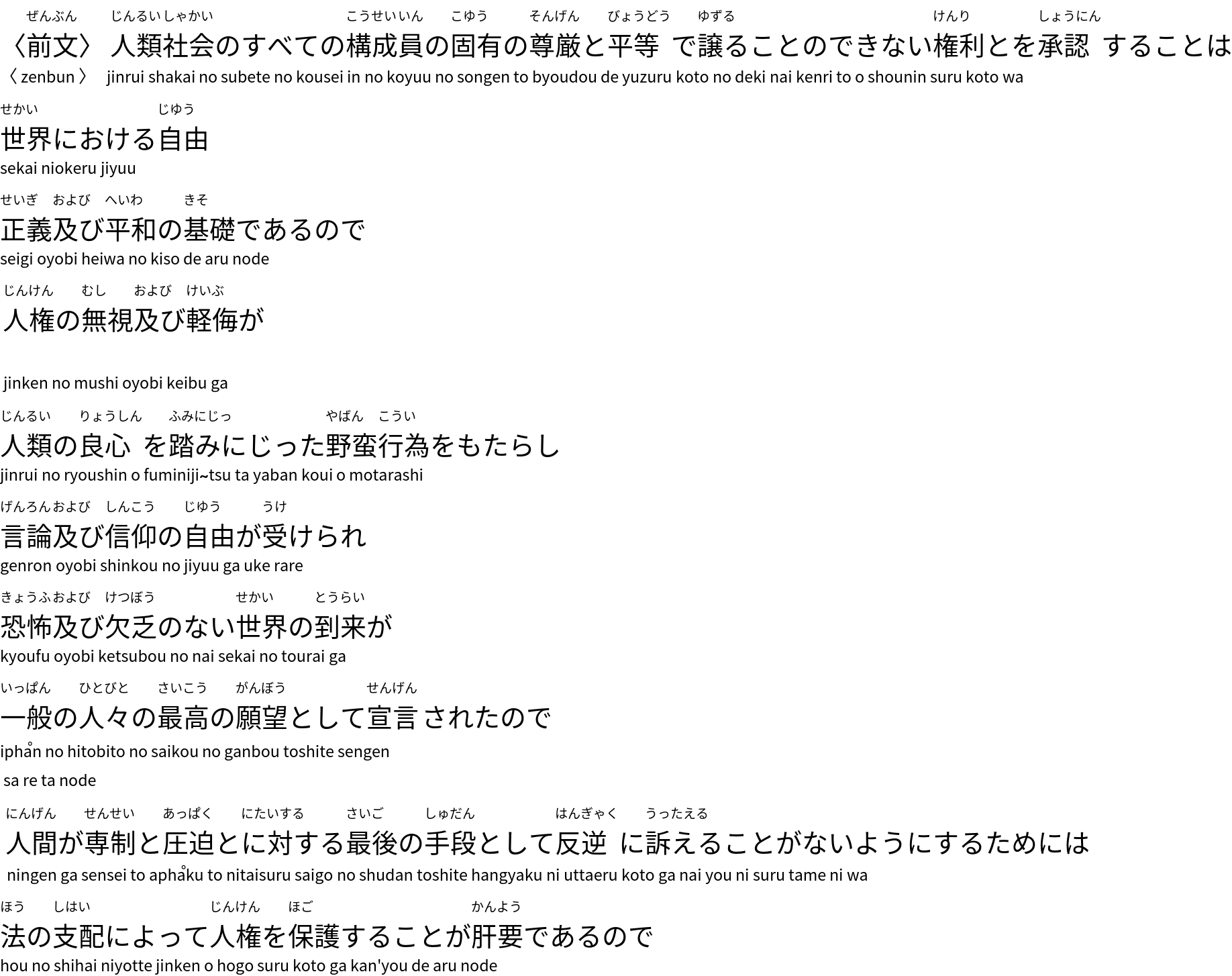 Show kana with a piece of Japanese text that indicates the pronunciation of kanji