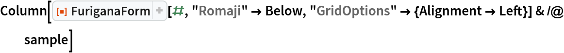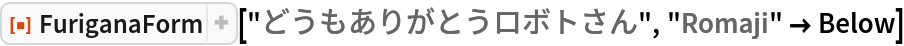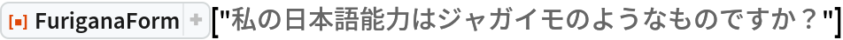 ResourceFunction["FuriganaForm"]["string"] shows the Japanese text "string" along with kana that indicate the pronounciation of the kanji in "string". |