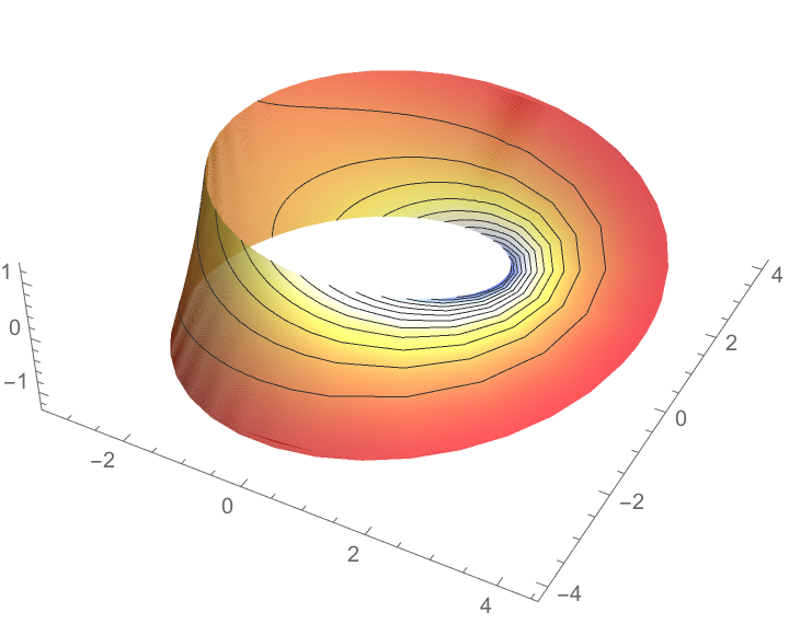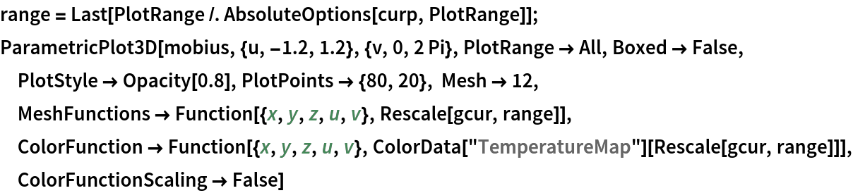 Plot the Möbius strip colored according to its Gaussian curvature: