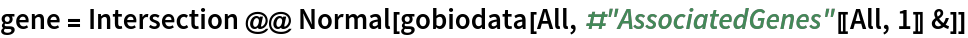 gene = Intersection @@ Normal[gobiodata[All, #"AssociatedGenes"[[All, 1]] &]]