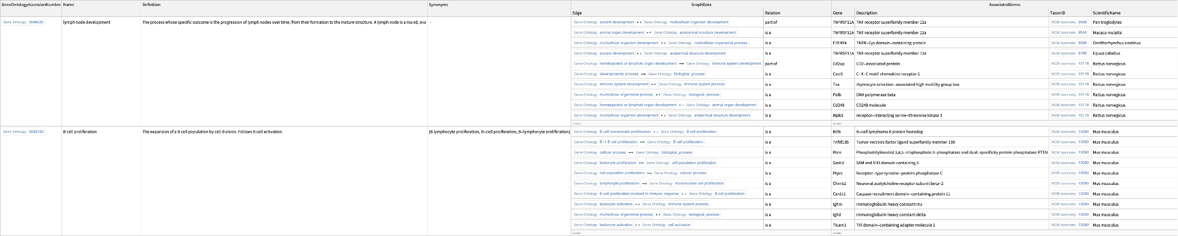 gobiodata = ResourceFunction["GeneOntologyData"][{"GO:0048535", "GO:0042100"}]