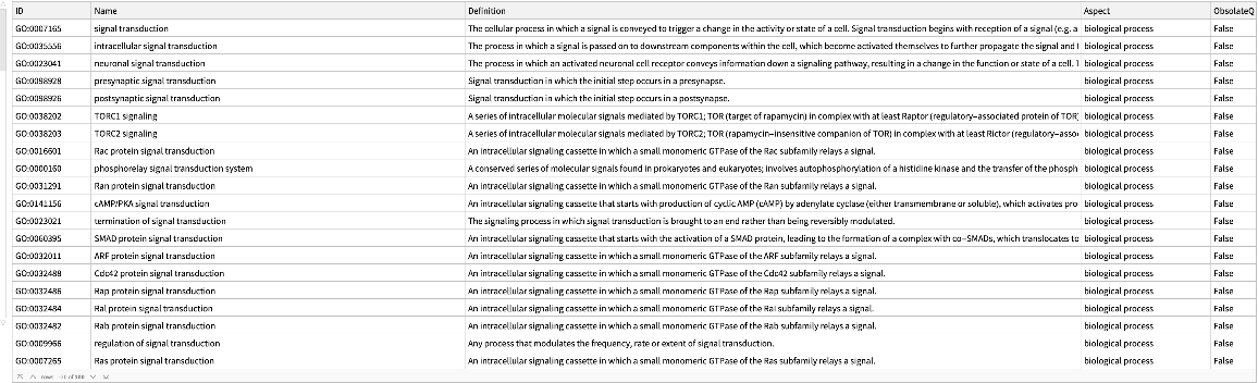 ResourceFunction["GeneOntologyData"]["signal transduction", "Query"]