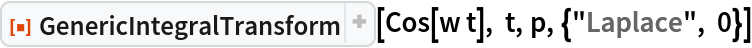 Compute the Laplace transform of a cosine. By default, GenericIntegralTransform gives results in terms of an Inactive MeijerG function: