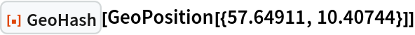 ResourceFunction["GeoHash"][GeoPosition[lat,lon]] finds the geohash of a geo position. | |
