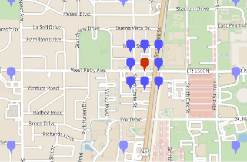 Find the Nearest Neighbors (NNs) of the location by matching a prefix of the focus location geohash in the association of Illinois-geohashes: