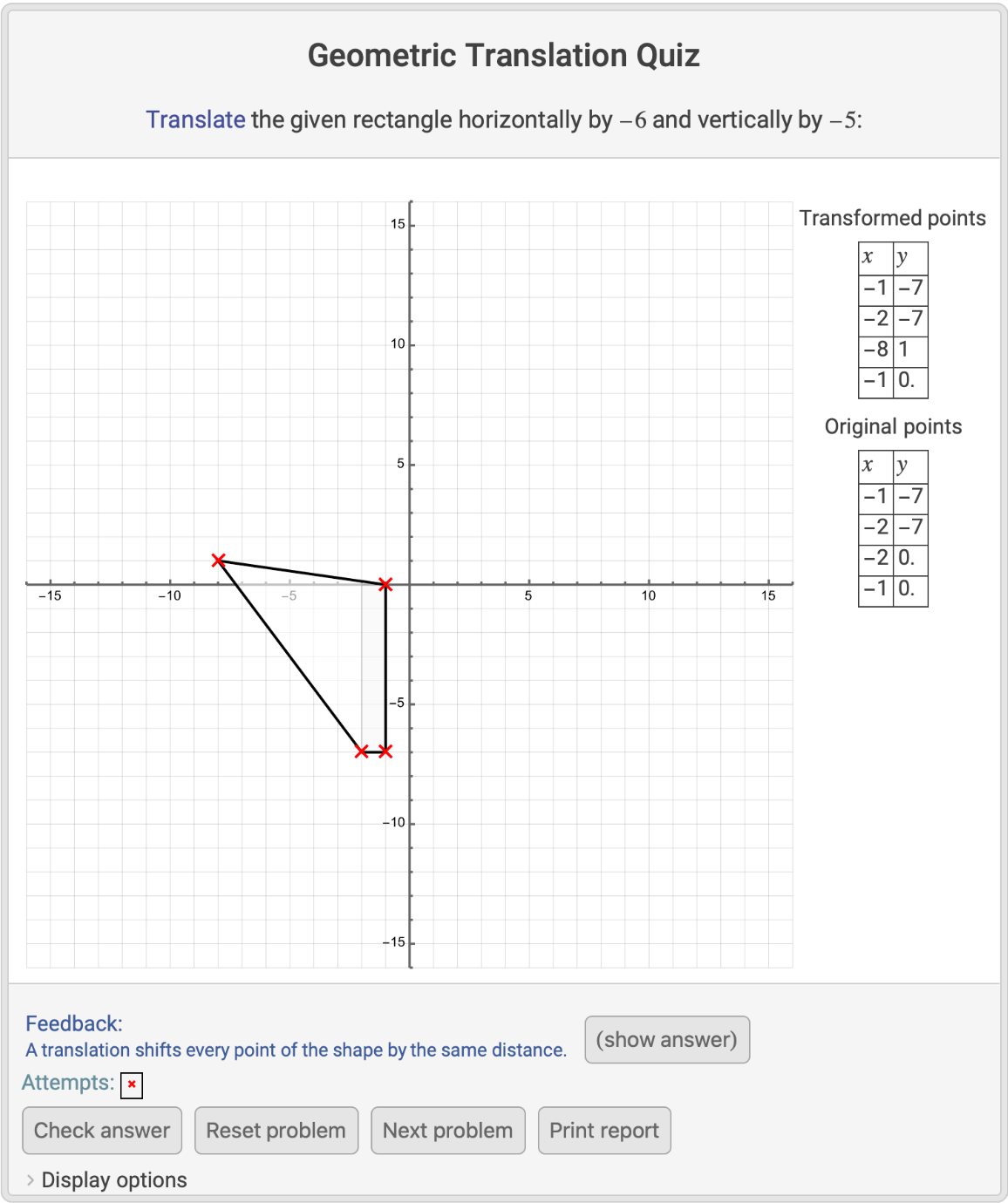 Generate an interface to quiz yourself on plotting a translation of a polygon by moving points on a graph: