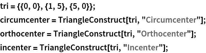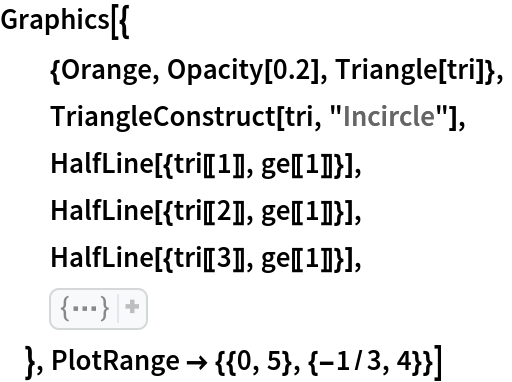 ResourceFunction["GergonnePoint"][{p1,p2,p3}] returns the Gergonne point of the triangle defined by vertices p1,p2 and p3. |