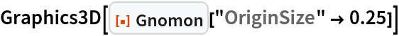 A gnomon is commonly placed in 3D graphics or in CAD software like Solidworks, Blender, Autodesk, etc. to indicate the location of the origin and the direction of the principal axes.