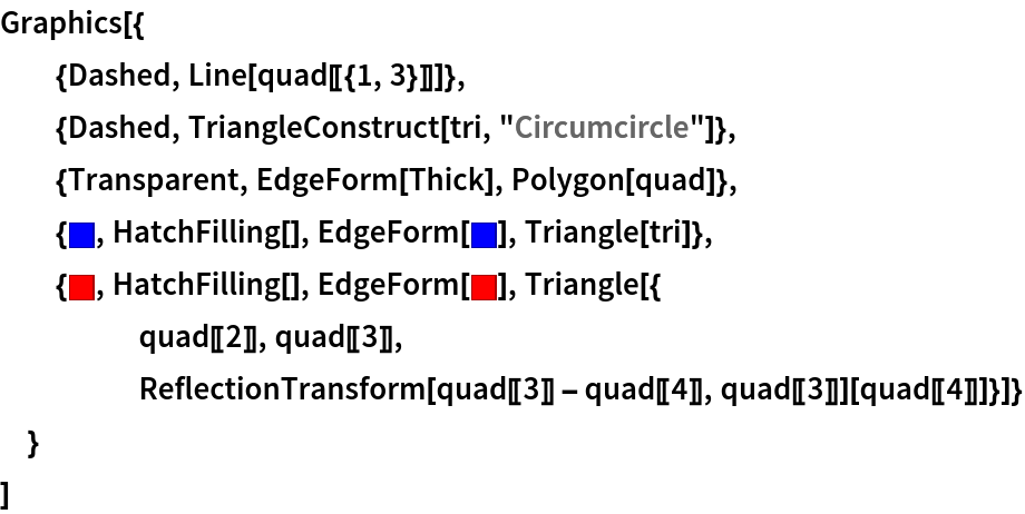 ResourceFunction["HarmonicQuadrilaterals"][{p1,p2,p3}] gives the three harmonic quadrilaterals corresponding to the triangle with corner points p1,p2, and p3. |