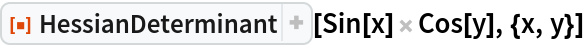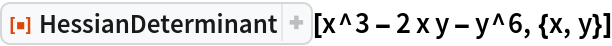 ResourceFunction["HessianDeterminant"][expr,{var1, var2, …}] computes the determinant of the Hessian matrix of the expression expr with respect to the given variables. |