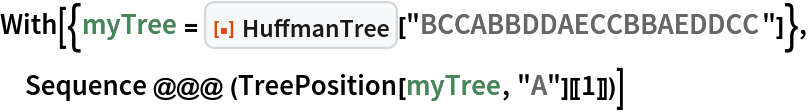 ResourceFunction["HuffmanTree"]["string"] gives an optimal binary Huffman tree encoding for a string. |