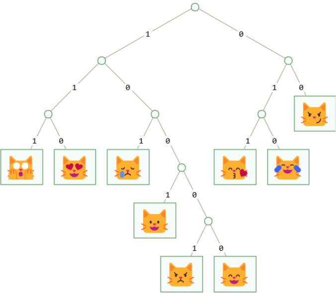 Huffman tree is an efficient data structure to represent mood status of an emotional cat. Use emoji to represent emotions: