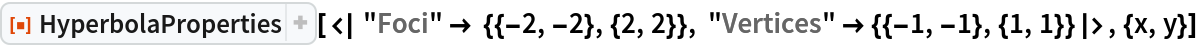 ResourceFunction["HyperbolaProperties"] will issue a message and return an
