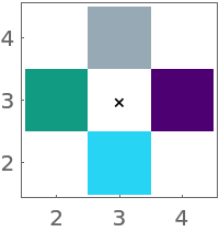 Take a 2×2 subimage at {3,3}. It will be extracted half a pixel upwards and to the left of the specified center at {2.5, 3.5}: