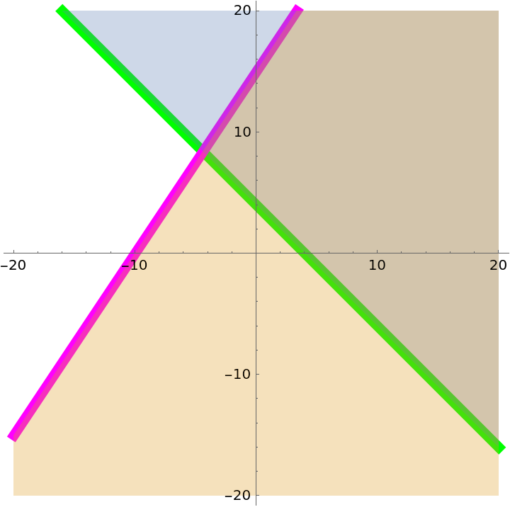 Plot a set of inequalities distinguishing between different regions