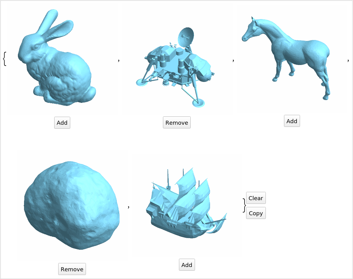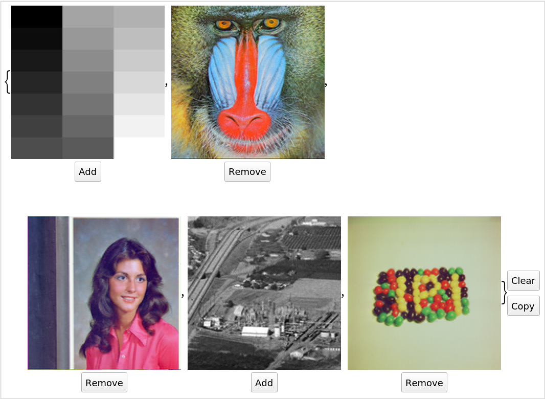 Click on the "Add" button to add pictures to the selection, the "Copy" button to copy the selection to the clipboard, and the "Clear" button to clear the selection. Paste the copied selection here: