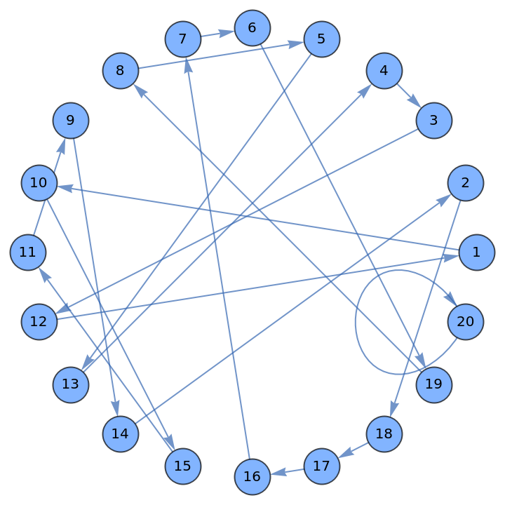 InverseFoataTransform produces a permutation Φ-1(p) whose number of excedances matches the number of descents in the original permutation p. Generate a random permutation: