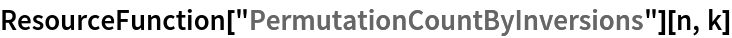 The number of n permutations with k inversions is given by the resource function PermutationCountByInversions: