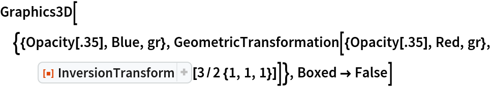 ResourceFunction["InversionTransform"][p] gives a TransformationFunction that represents an inversion through the point p. |