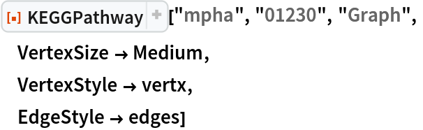 Using the information about reactions and compounds, we get the list of edges and vertices to highlight the reaction in biosynthesis of amino acids pathway that is catalyzed by the K00003 orthology: